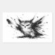 Angry Owl Explosive Ink Brushstroke Bird Design on Rectangular Sticker