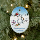 Cute and adorable. If you want a holiday ornament that is neither of those, this is a good choice. This fun ornament features a lovely holiday scene of children being chased by a snowman come to life in a winterwonderland. The children know. He came to life that day.