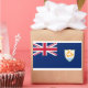 The national flag of Anguilla, a British overseas territory, consists of a Blue Ensign with the British flag in the canton, charged with the coat of arms of Anguilla in the fly. The coat of arms consists of three dolphins in a circular formation, which were featured on the earlier Anguillan flag, and which stand for friendship, wisdom, and strength. The white in the background stands for peace, and the blue represents the sea, as well as faith, youth, and hope.