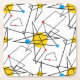 Black linear angles and circles in primary colours of red, yellow and blue make up this contemporary retro pattern reminiscent of Mid Century Modern design and the Atomic Age of the 1950's and 1960's.