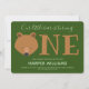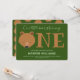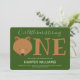 Our little cub is turning one first baby birthday invitation. This invitation is green and brown. The word "One" in large letters with a bear face illustration as the first letter of the word. Simply, customise this invitation, add it to your cart, and happy birthday to your wonderful baby!