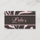 Animal business card with trendy elegant zebra print great for a nail / tanning / hair salon or spa, massage therapy or the beauty industry or any cosmetologist / cosmetology or a florist or wedding planner.