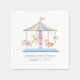 Sweet baby shower paper napkins, with cute graphics of a pastel coloured animal carousel. Personalise the black text for your baby shower event. Coordinating paper plates and invitations are available.