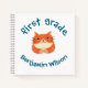 Notebook for first grade kid with customised name and background accompanied with a cute cat.