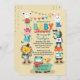 Cute, fun Baby Shower invitation with colourful little animals making music and celebrating. Bunting flags and wee Llama too. Customise text with your party information. Matching postage available.