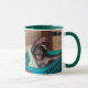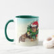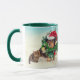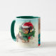 Make your own photo mug for animal lovers or keep the sample photographs of a cute cat, dog, and baby orphan orangutan. Both photos allow for editing. The dog and cat photo shows a Christmas tree and Santa hat, but the mug may be personalised for any occasion by uploading your own photo.
