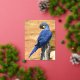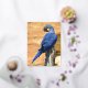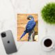 Animal of Hyacinth macaw perched on wood post Foil Holiday Postcard