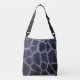 The animal print pattern by ZoeSPEAK on this crossbody Toto Bag was made from an original photograph of a giraffe. The pattern is done in shades of blue.