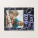 The original animal print pattern on this Jigsaw Puzzle was made from an original photograph by ZoeSPEAK of a giraffe. The pattern is done in shades of blue. There is text which reads FAMILY ZOO. This is set for you to personalise, use as is, or delete if you prefer. There is also a photo template for you to replace with your own photo.