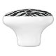 This ceramic cabinet knob is shown in white with a black and grey zebra animal print.