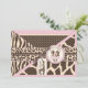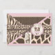 Patchwork of animal prints with pink accents. Zebra print tutu jumper and giraffe 3D-look hang tag with sweet bow. Baby girl baby shower invitation card design.