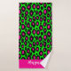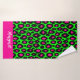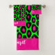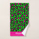 Animal print leopard neon green & custom name bath towel set