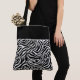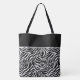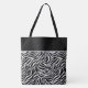 This shoulder tote bag is shown with a cute animal zebra print design.