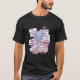 I give wanted to give this a 4 instead of a 5 because these Basic DARK T0shirts run unexpectedly SLIM or Narrow. Which is great if you do not have a potbelly, but I have a paunch. It isn't the shirt's fault that I've got a beer belly. The design and shirt itself is a quality cotton shirt. The color is more of a deep purple, but still a very pretty color. The Basic DARK T-shirts run a bit SLIMMER than the Basic Ts. The neck is a fraction narrower (or seems to be narrower) also. I'm a paunchy middle-aged woman and my neck is 12 inches (31cm) thick and the neckline fell about the same as in the photo of the man, and I had the desire to tug it a bit. So if you're a thick necked man or like loose shirts, be aware these are slimmer shirts. Once I get rid of my lockdown paunch it'll look great. The shirt washed well in cold water with no apparent bleeding. We don't have a dryer, so it hung dry. Did not shrink. Love the colors and the design. The design looks smaller on my shirt than it does on the model on-line. But still, it looks good on the shirt. The printing looks as it does on the model, just the size seems fractionally smaller. Washed garment in cold water, hung dry and design appeared unaffected.