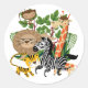 Animal Safari design features jungle plants with a lion, zebra, tiger, giraffe, and monkey! Animal Safari design T-shirts, bodysuits, bibs, bags, mugs, cards, stickers, wall clocks, pillows, keepsakes, sleeves, cases, and more!