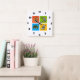 This wall clock showcases a collection of cute baby animals over orange, green blue and yellow squares in this zoo animal style and theme. This clock is made for any wall and printed with a AcryliPrint®HD process and made from grade-A acrylic. Battery operated uses one AA battery for Indoor use only, not recommended for outdoor use.