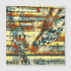 Graphic portrait of a giraffe mum kissing her baby boy who isn't real happy about this...