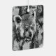 Graphic portrait of a cute red panda in black and white