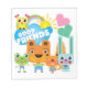 Cute, colourful, and fun animal friends design T-shirts, bibs, blankets, burp cloths, bathroom sets, wall clocks, bags, mugs, keepsakes, and more features an owl, bear, squirrel, bunny rabbit, and frog, a sun, rainbow, hearts, and cloud with text that reads Good Friends!