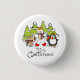 A cute, colorful Christmas holiday design button featuring a polar bear, penguin, and mouse all with scarves and ice skates with snow covered trees and text that reads It's Christmas!