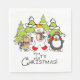 A cute, colourful Christmas holiday design paper napkin featuring a polar bear, penguin, and mouse all with scarves and ice skates with snow covered trees and text that reads It's Christmas!