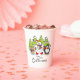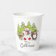A cute, colourful Christmas holiday design paper cups featuring a polar bear, penguin, and mouse all with scarves and ice skates with snow covered trees and text that reads It's Christmas!