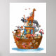 An original water color illustration of Noah's Ark. This big boat of wood is loaded with all kind of animals, like a zebra, a giraffe, an elephant. But also "ordinary" animals like dogs, chickens and pigs. There is a lot to see for the little ones and grown-ups. The illustration is made by Ans Collijn. Great art for a kid's room.