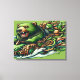 Animated Bears Riding a Green Car in a Vibra 16x20 Canvas Print