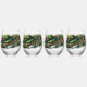 Animated Bears Riding a Green Car Stemless Wine Glass