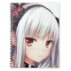Anime annoyed silver-haired girl with garnet eyes notebook