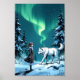 A mystical winter anime scene blending arctic snow, glowing aurora, and powerful wolf presence.
