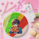 Personalised birthday boy paper plates for a boy's pizza birthday party. Cute anime boy holding a piece of pizza with a colourful pop art background.