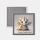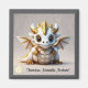 A super cute, anime-inspired dragon mascot skull with a sleek, modern flat design. The golden accents on the skull give it a mystical, enchanted vibe, while the soft, light-coloured textured background adds a touch of whimsy and warmth. "Original Image was generated by Meta AI. AI generated artwork. Licensed under CC BY-SA 4.0."