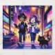 Colourful anime gamer sitting with his cat ready for next level gaming. Liquor Bottle Labels.
