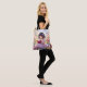 A sweet tote bag with an illustration of an little anime girl reading a book among flowers and musical notes with tones of pinks and purples.