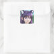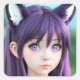 Pretty anime girl with big blue eyes, purple hair and headband with fox ears cute Ai art.