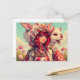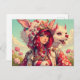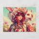 Beautiful fantasy anime illustration with cute redhaired girl with white magic creature. Postcard for fantasy and anime lovers and poscrossers.