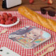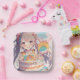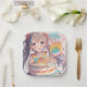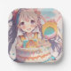 Birthday Party Paper Plates. Pretty purple and pink birthday cake anime girt whimsical art in purple, pink, blue and yellow.