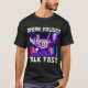 I give wanted to give this a 4 instead of a 5 because these Basic DARK T0shirts run unexpectedly SLIM or Narrow. Which is great if you do not have a potbelly, but I have a paunch. It isn't the shirt's fault that I've got a beer belly. The design and shirt itself is a quality cotton shirt. The color is more of a deep purple, but still a very pretty color. The Basic DARK T-shirts run a bit SLIMMER than the Basic Ts. The neck is a fraction narrower (or seems to be narrower) also. I'm a paunchy middle-aged woman and my neck is 12 inches (31cm) thick and the neckline fell about the same as in the photo of the man, and I had the desire to tug it a bit. So if you're a thick necked man or like loose shirts, be aware these are slimmer shirts. Once I get rid of my lockdown paunch it'll look great. The shirt washed well in cold water with no apparent bleeding. We don't have a dryer, so it hung dry. Did not shrink. Love the colors and the design. The design looks smaller on my shirt than it does on the model on-line. But still, it looks good on the shirt. The printing looks as it does on the model, just the size seems fractionally smaller. Washed garment in cold water, hung dry and design appeared unaffected.