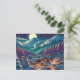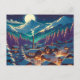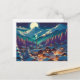 Anime Style Winter Village Snowy Night Scene Postcard