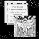 A colouring page with an anime boy superhero flying through the city skies. Cute colour me card for a boy's birthday party invitation.