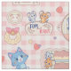This charming pattern features the beloved characters Tom, Jerry, and Tuffy engaging in sweet bakery adventures. Set against a pink gingham background interspersed with delightful culinary motifs, the design showcases Tom and the mice in various playful scenarios involving cakes, doughnuts, and other pastries. Each vignette is framed in ornate, cookie-like borders, adding a whimsical touch to the overall design. The pattern bursts with pastel colours and adorable illustrations, perfect for decorating kitchen accessories, children's clothing, or any baking-themed project, capturing the fun and mischief synonymous with Tom and Jerry.