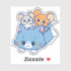 This adorable anime graphic features Tom, Jerry, and Tuffy in a delightful display of camaraderie and fun. Tom, the large grey cat, has a big, welcoming smile, serving as a soft and cosy seat for his little friends. Jerry, the brown mouse, and Tuffy, the grey mouse, are perched happily atop Tom, showcasing their bond and playful spirits. The design is simple yet heartwarming, emphasising the friendship between these classic characters with bright colours and a cheerful vibe. This graphic captures the essence of their adventures together, making it a perfect addition for any fan of the "Tom and Jerry" series.