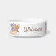 This is a heavy, durable bowl decorated with Tibbies of many colors, the perfect size for hungry/thirsty Tibs. The design is interesting and printing clear.