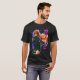 I give wanted to give this a 4 instead of a 5 because these Basic DARK T0shirts run unexpectedly SLIM or Narrow. Which is great if you do not have a potbelly, but I have a paunch. It isn't the shirt's fault that I've got a beer belly. The design and shirt itself is a quality cotton shirt. The color is more of a deep purple, but still a very pretty color. The Basic DARK T-shirts run a bit SLIMMER than the Basic Ts. The neck is a fraction narrower (or seems to be narrower) also. I'm a paunchy middle-aged woman and my neck is 12 inches (31cm) thick and the neckline fell about the same as in the photo of the man, and I had the desire to tug it a bit. So if you're a thick necked man or like loose shirts, be aware these are slimmer shirts. Once I get rid of my lockdown paunch it'll look great. The shirt washed well in cold water with no apparent bleeding. We don't have a dryer, so it hung dry. Did not shrink. Love the colors and the design. The design looks smaller on my shirt than it does on the model on-line. But still, it looks good on the shirt. The printing looks as it does on the model, just the size seems fractionally smaller. Washed garment in cold water, hung dry and design appeared unaffected.