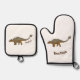 Ankylosaurus armoured dinosaur illustration oven mitt & pot holder set
