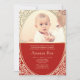 Honour your daughter’s first rice feeding ceremony with this elegant red and gold Annaprashan invitation. Designed with a photo frame and traditional Indian patterns, this customisable card is perfect for celebrating a special milestone like Mukhe Bhaat or Anna Prasan. Add your event details and baby photo to create a personalised keepsake your guests will adore.
