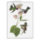 This pretty print by John Audubon is of Anna's Hummingbird. In this print there is a trio of hummingbirds. There is a female sitting in a nest and two males around a branch with pink flowers.