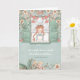 This Anne of Green Gables card features our beloved Anne peeking out of a window with green shutters. The quote “I'm so glad I live in a world where there are Octobers.” is written on the back and is surrounded by a coordinating floral swag. The background is a distressed robin's egg blue. Colours include, sage green, pale blue, orange, pink and white.