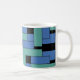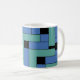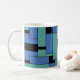 Annexe coffee mugs and steins. Annexe is an abstract design created by Vexenwraith and consists of turquoise and blue blocks on a black background.